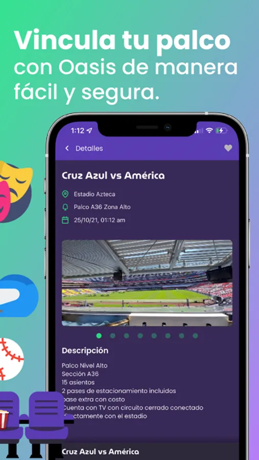 Rentar un palco para ver cualquier deporte, artista o entretenimiento en general nunca había sido tan fácil como con Oasis. En nuestra aplicación te ofrecemos la exclusividad de rentar un palco por evento o por toda una temporada donde ofrecemos los siguientes servicios: