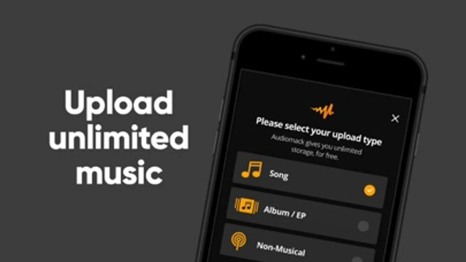 • Upload songs, albums, podcasts, and other audio content right from your phone to Audiomack.