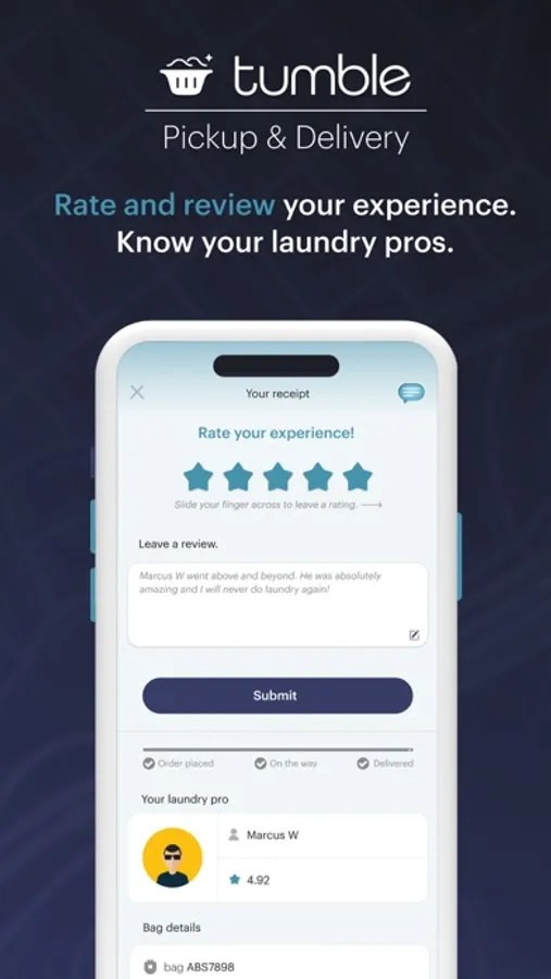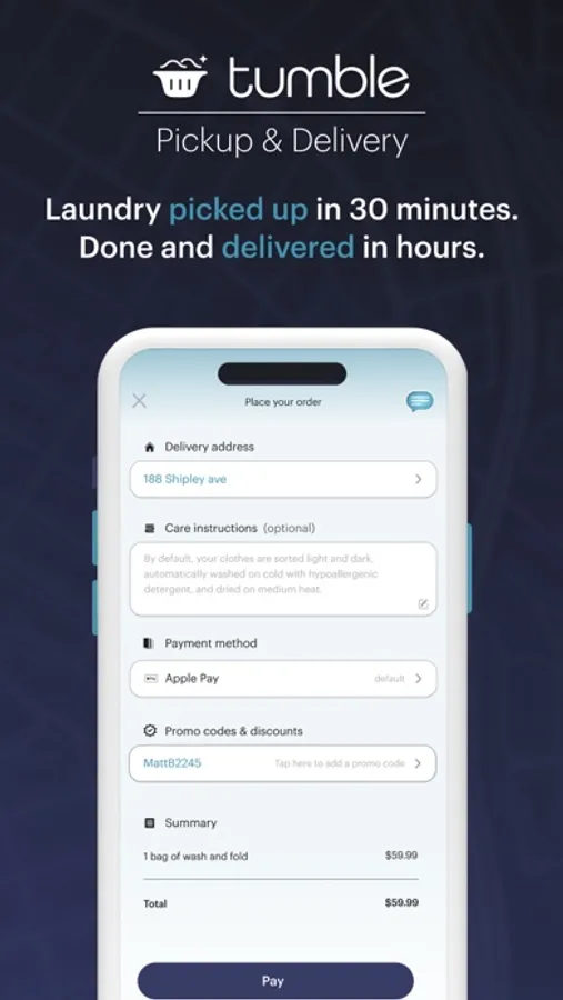 Tumble makes laundry day easy, seamless or eliminated altogether. Our dual-purpose app gives residents mobile-first functionally from the comfort of their apartment homes. View machine availability, pay totally cashless, and receive real-time cycle status updates. Tap into Tumble Pickup & Delivery to get the fastest on-demand service out there, your laundry picked up, done and delivered to your front door in just hours. Learn more at www.tumble.to and www.jointumble.com. Follow us on social media @TumbleLaundry.
