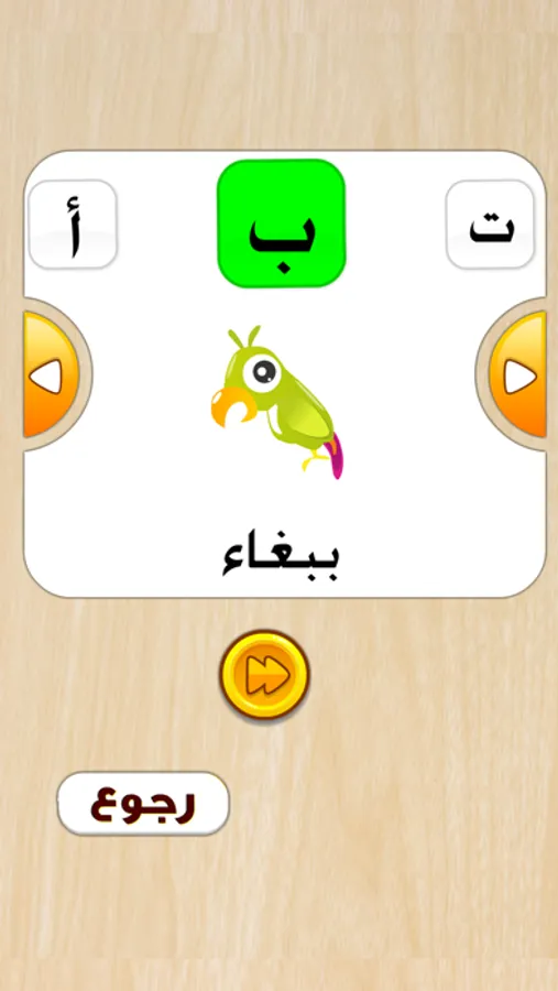 الأولى بالجدول حيث يمكن تعلم جدول الحروف الأبجدية كما يمكنه سماع الحروف بالضغط على الحرف او تعلم الأبجدية من الألف إلى الياء و هذا بالضغط على زر "هجاء"
