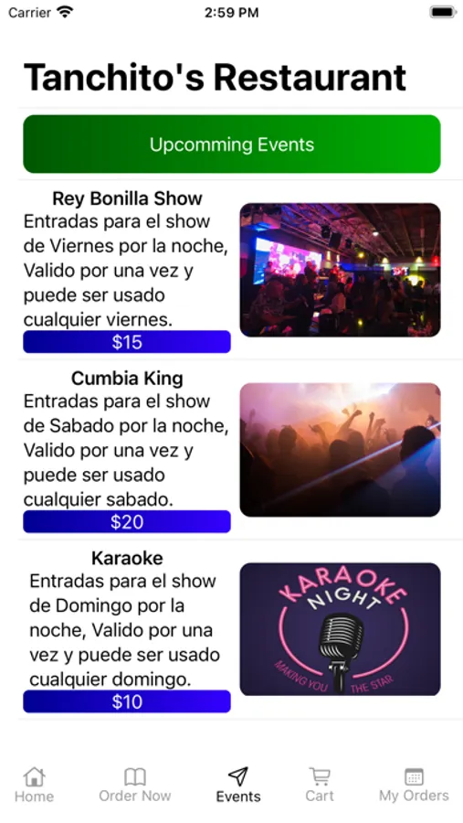 You can order Food, Tickets for House Events, Promossions online from Tanchitos Restaurant.