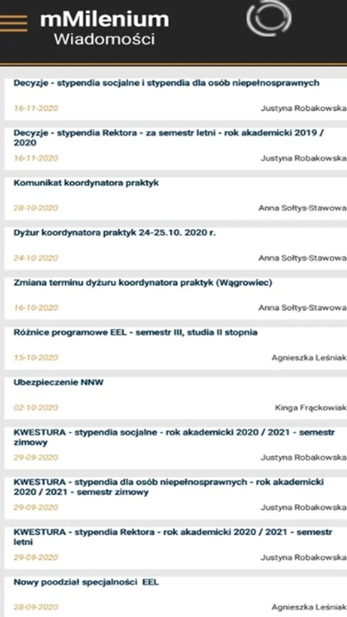 Studenci uczelni mogą przeglądać wiadomości z uczelni, stan swoich finansów, oceny i plany zajęć.
