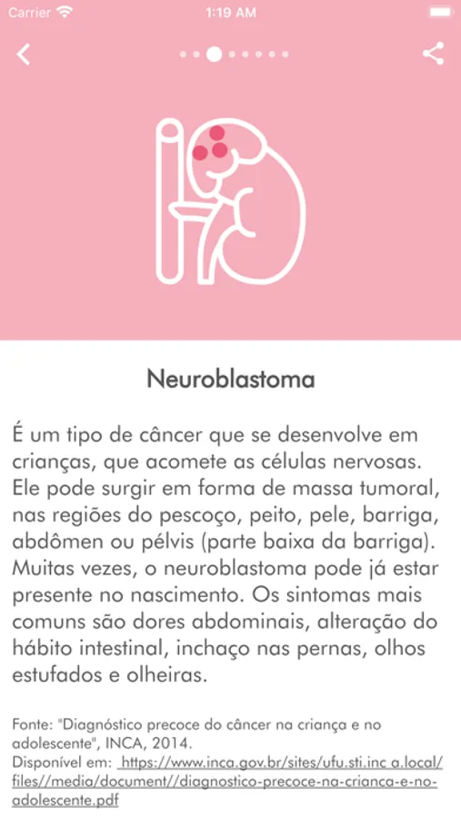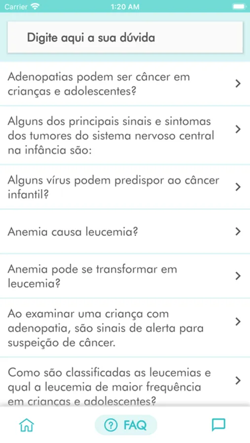 Além disso, o APPonco possui o módulo de público geral, onde oferece o conteúdo especializado, os serviços SUS e um FAQ com perguntas e respostas para aos pais, pacientes e cuidadores.