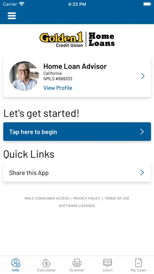 Golden 1 Home Loans is committed to making the home loan process as easy as possible for you. Use this app to simply and securely: