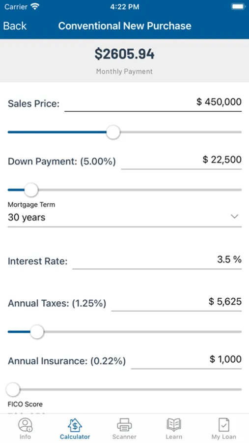 The calculations provided by the Golden 1 Home Loans App are useful estimates, for your convenience, and are not a guarantee of financing or commitment to lend. All loans are subject to credit approval. Be sure to contact your Home Loan Advisor for a customized solution and questions about the home loan process. Please visit https://www.golden1.com/credit-cards-loans/home-loans/advisor to find a Home Loan Advisor in your area.