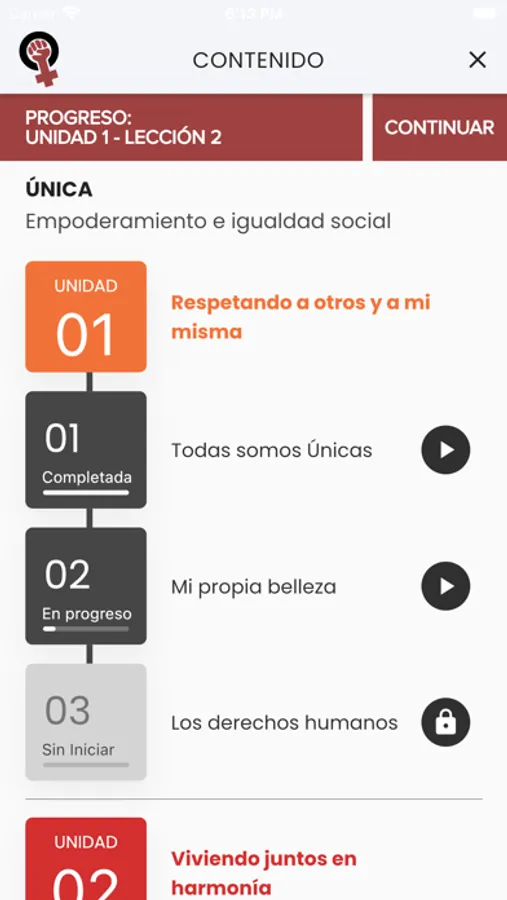 Una aplicación móvil que contiene los temas del currículo de Única, el contenido de estos temas fue desarrollado por un equipo de entrenadoras y participantes del programa, quienes con ayuda del staff de DREAM construyeron el contenido de las 5 unidades de la App. Un grupo de chicas de 14 a 19 años de edad relataron historias, grabaron vídeos y audios y dibujaron ilustraciones e imágenes para ara enseñar sobre autoestima, relaciones sanas, órganos reproductores, prevención de embarazo a temprana edad e infecciones de transmisión sexual, prevención de violencia, equidad, entre otros.