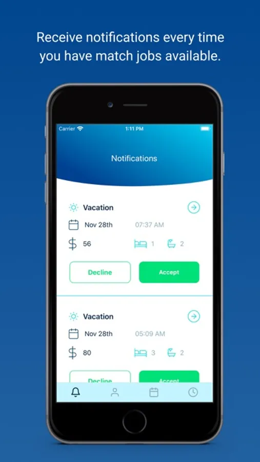 Sett Cleaners Pro App connects you with Sett Solutions client's cleaning jobs list through a smart matching system designed to help you select desirable BnB cleaning jobs and fill up your schedule with other cleaning types.