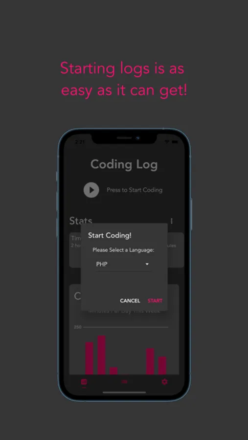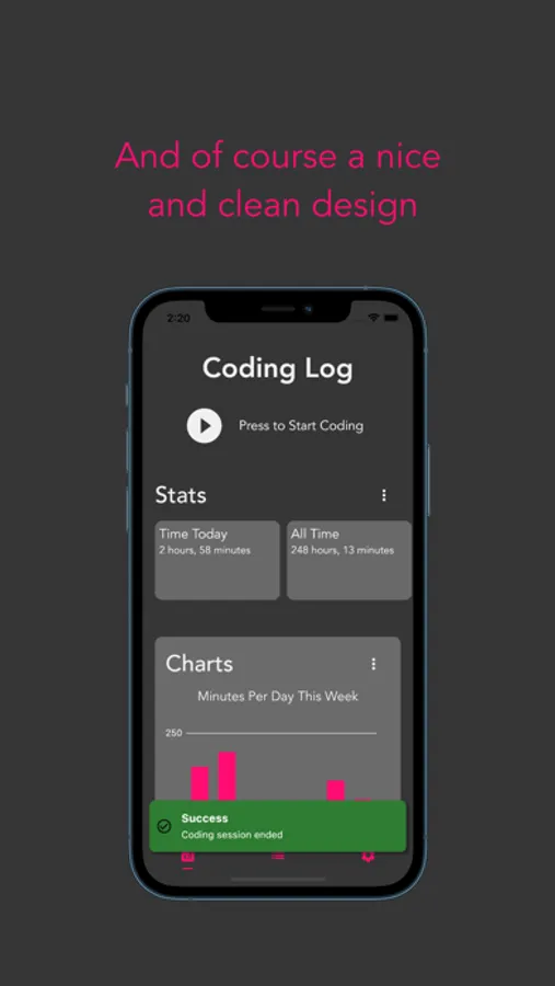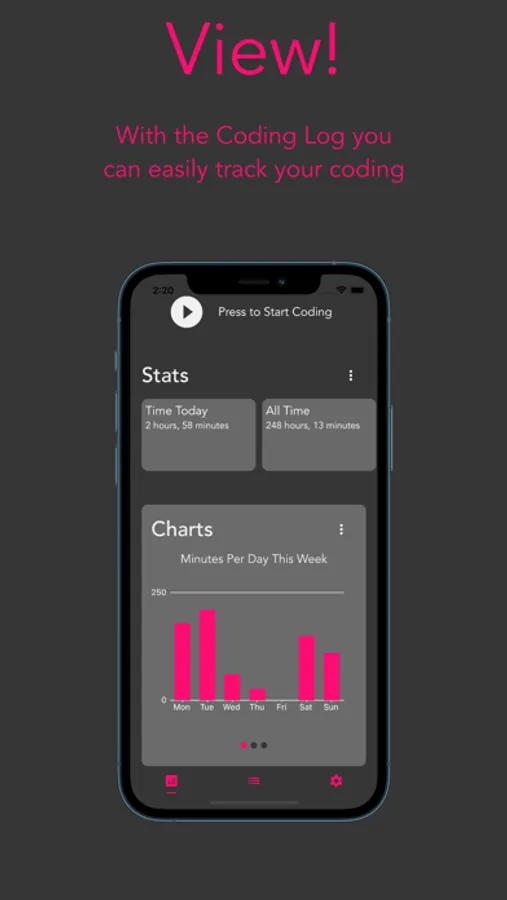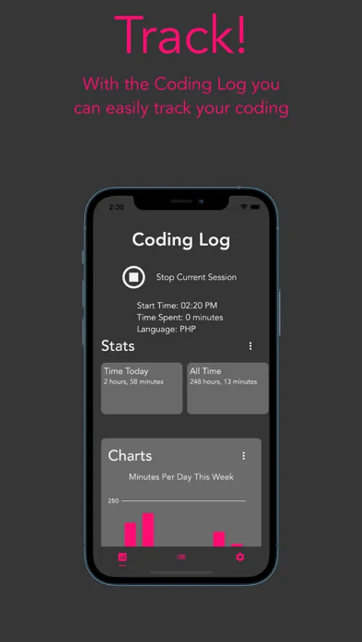 This app is used to track how much you are coding. You can view your data in charts, stats and in a list. And all of this is for free, so why not try it out!