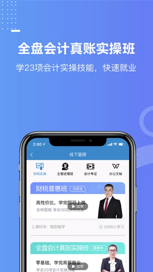 学乐佳会计不仅只提供在线学习会计的学乐佳app,更提供线下几百家学习会计学校,课堂上专业老师手把手教做账,一对一实战+各行业财税真账实操,更有7天免费试听课程,助您更快考证和强大实操能力!