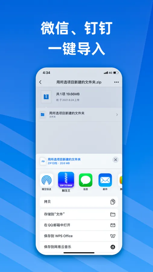 4. Support from WeChat, nail, fly book, WPS, iCloud, local files and albums to import files with one button