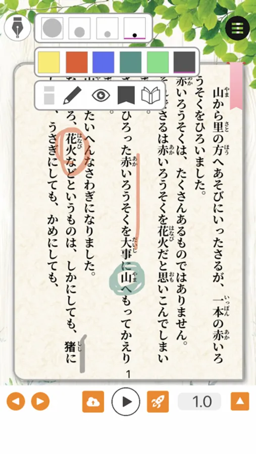 従来の読むとくアプリでは、書籍のご用意が必要ですが、読むとく名人アプリはデジタルブックとデジタルワークの機能を搭載しました。ただし、著作権保護の都合、ご用意しているタイトルは著作権の消滅した作者(死後50年超経過)の作品限定です。