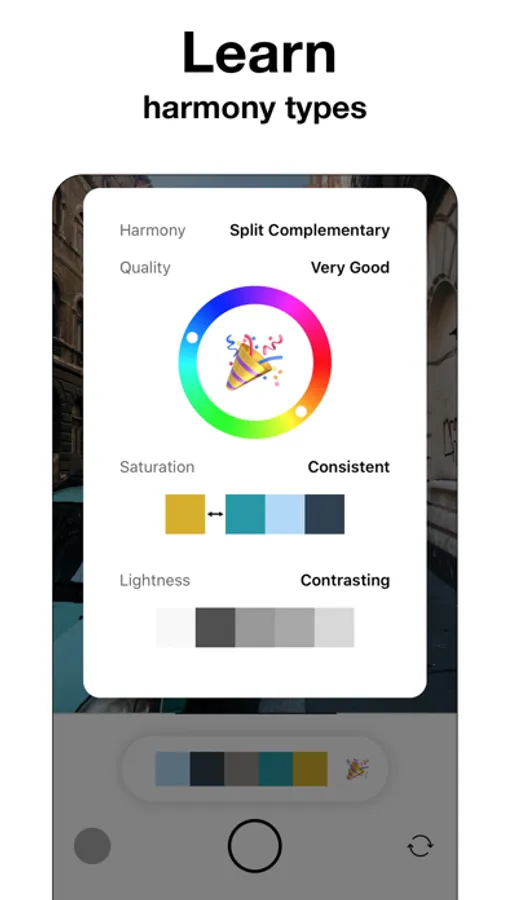 Lumic is a free camera that shows you dominant colors in every current frame and evaluates how well they match with each other. It also shows you the color harmony type, saturation and lightness evaluation. Learn to make better photos that are natural and not filtered or edited.