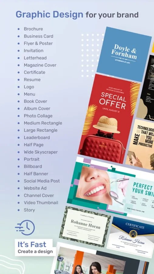 Want to create promotional posters, advertisement, offer announcements, cover photos for your shop, logo, restaurant, office or social sites? If yes then this is the app for you.