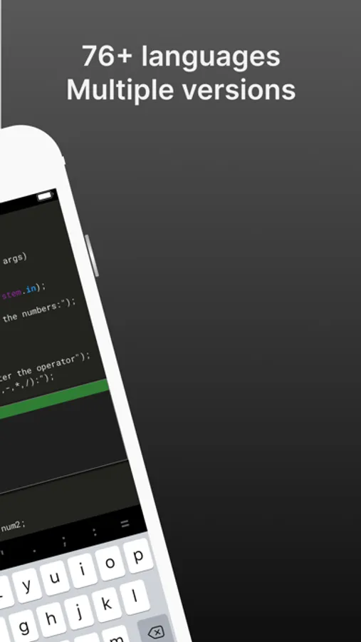 Compile and run programs in 76 languages, with support for multiple versions in each language, including Java, C++, Python, Ruby, and more!