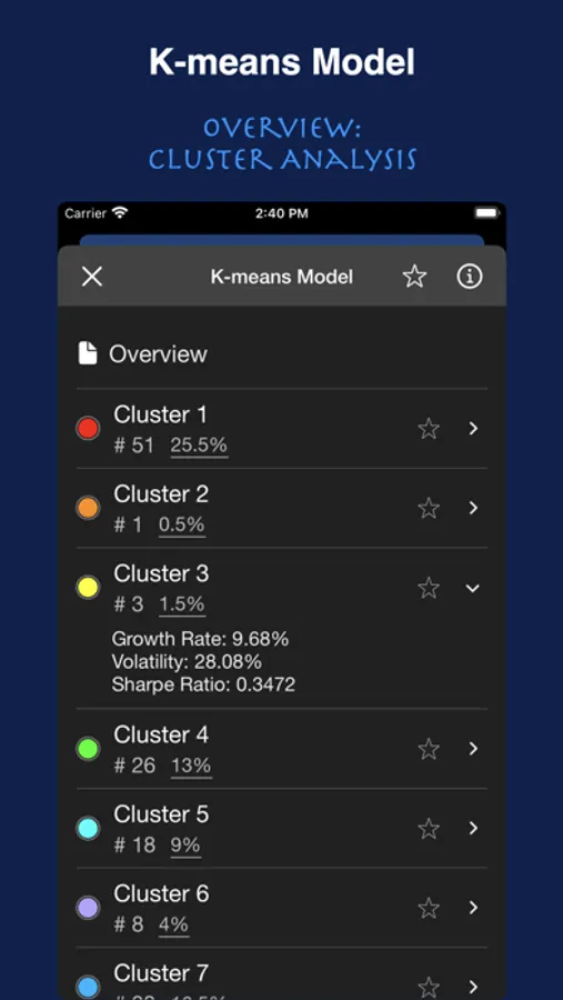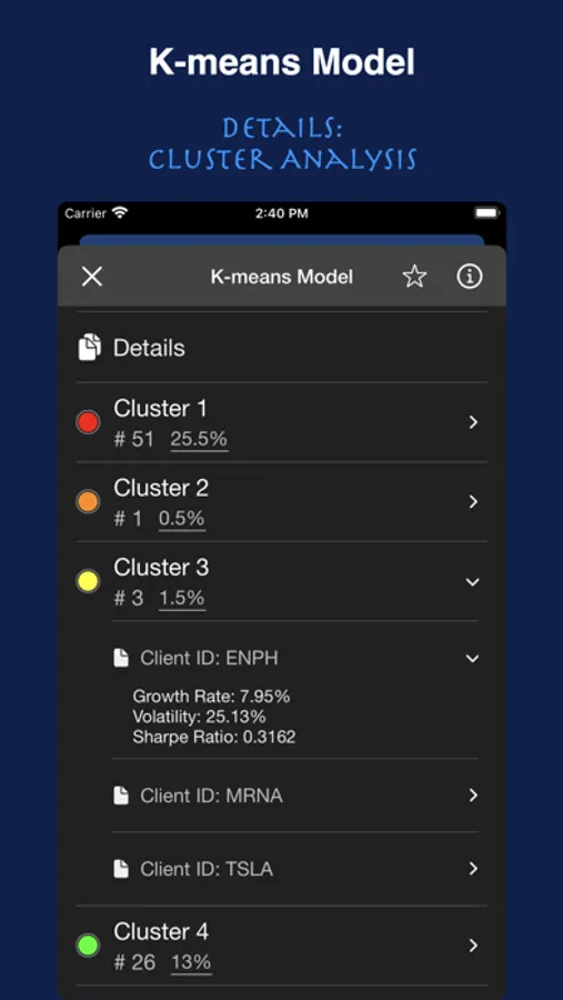 For example, you can perform cluster analysis based on the monthly purchase data of VIP customers. Cluster2A will automatically calculate each customer's purchase growth rate, purchase volatility and the growth rate per unit of volatility, and make clustering recommendations.