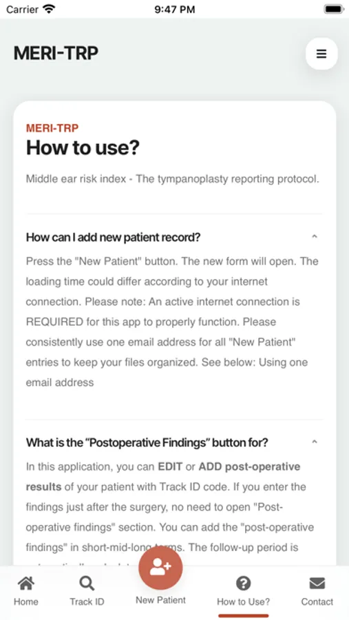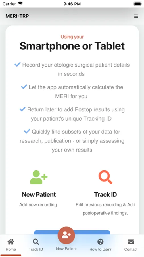 MERI-TRP now automatically stores your patients informations and calculates your patients MERI from the parameters you enter.