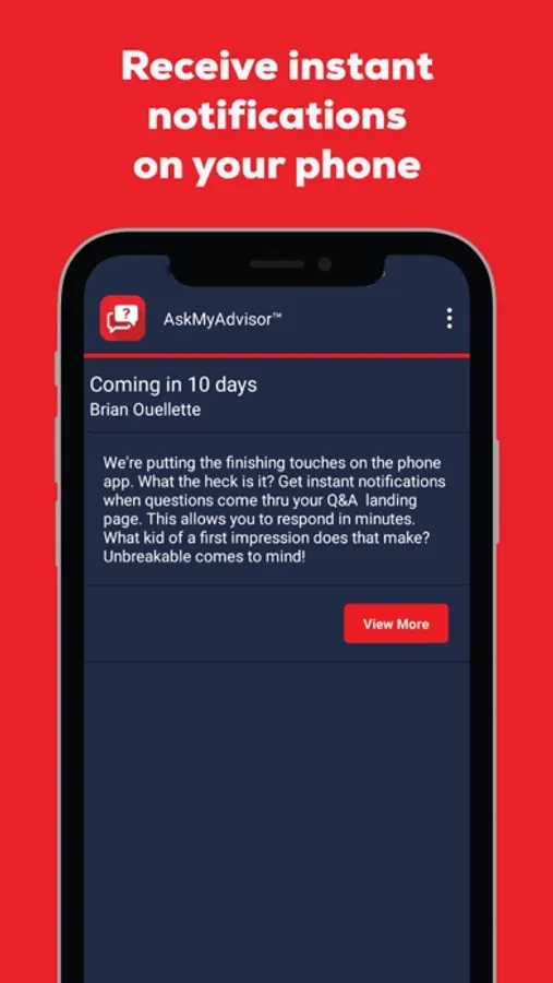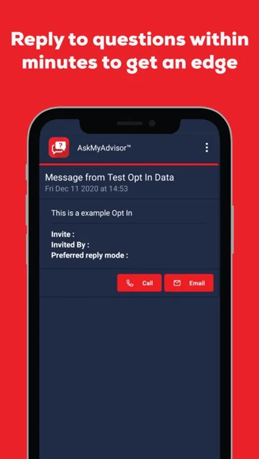 When questions are sent, advisor members receive instant notifications on their phone. This allows them to reply within minutes, giving them an edge. This strengthens current relationships with your top clients and builds new relationships, quickly.