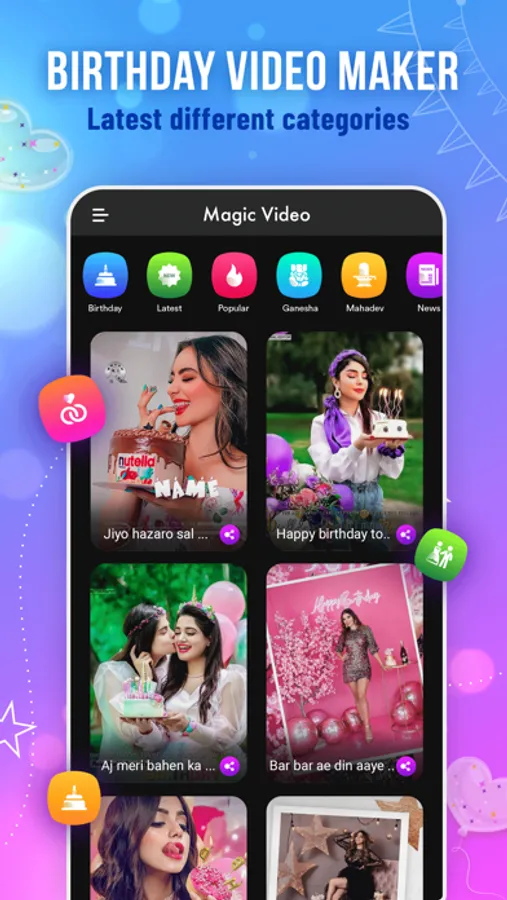 We Hope You Definitely Love Our Both New Concept "Birthday Status Maker" & "Birthday Video Maker " Please Give Us Review & Ratings That Motive Us So Much To Create This Kind Of Apps