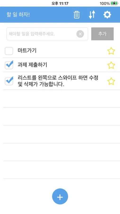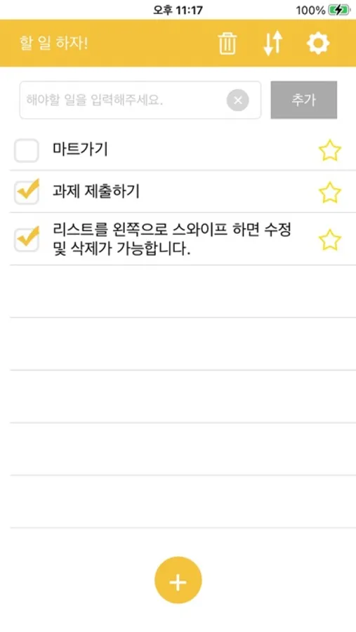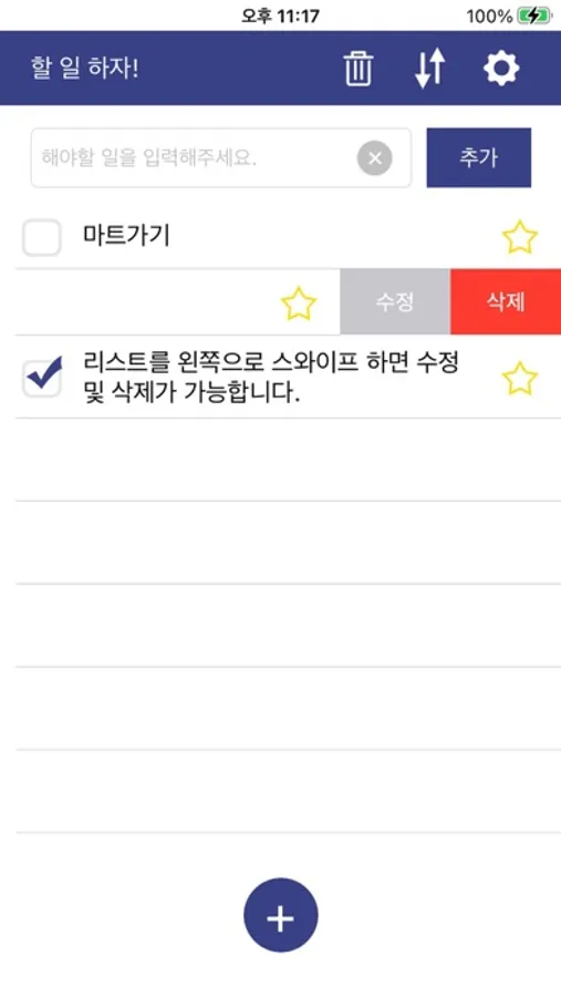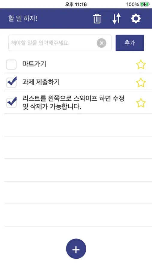 해야할 일을 간단하게 작성하여 체크할 수 있는 앱입니다.