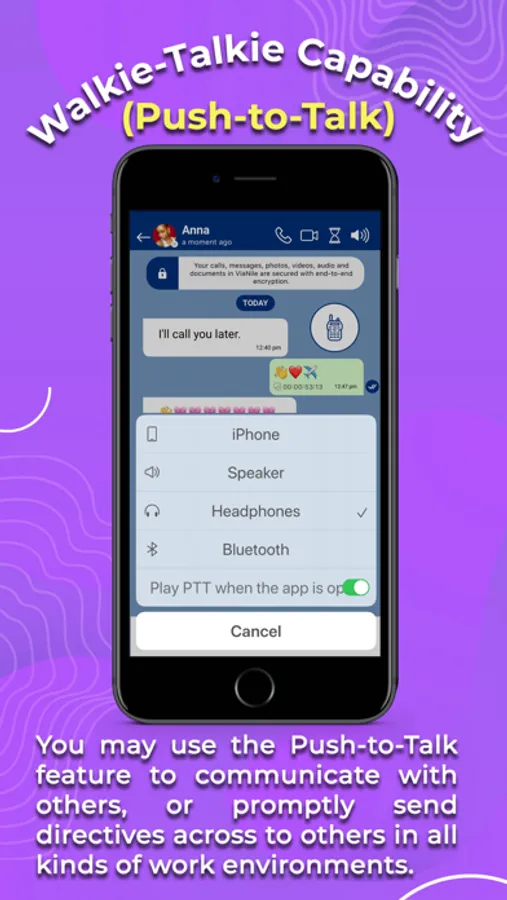 Walkie-Talkie capability (Push-to-Talk). You may use the Push-to-Talk feature to communicate with others, or promptly send directives across to others in all kinds of work environments.