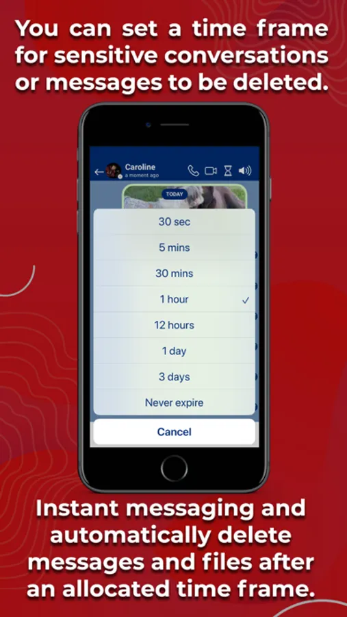Automatically delete messages and files after an allocated time frame. You can set a time frame for sensitive conversations or messages to be deleted.