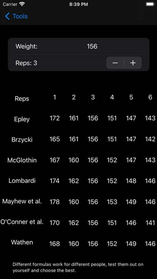 One Rep Max calculator