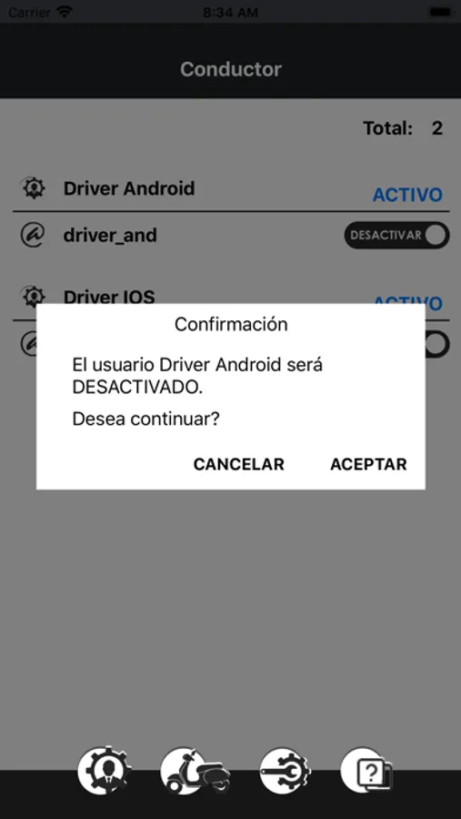 • Gestión inmediata de acceso (Activar/Desactivar - Conductores)