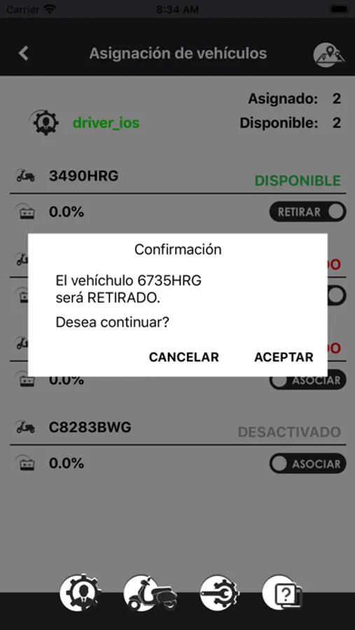 • Evaluación del estado de tus vehículos (En uso/Disponible/Desconectado/Batería )