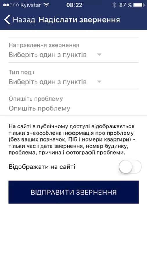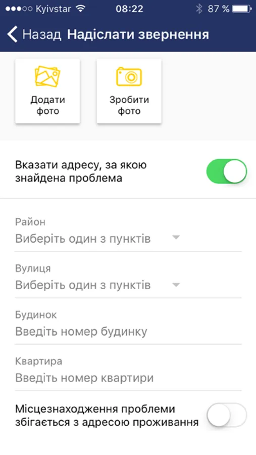 прикріпити фотографію до звернення;