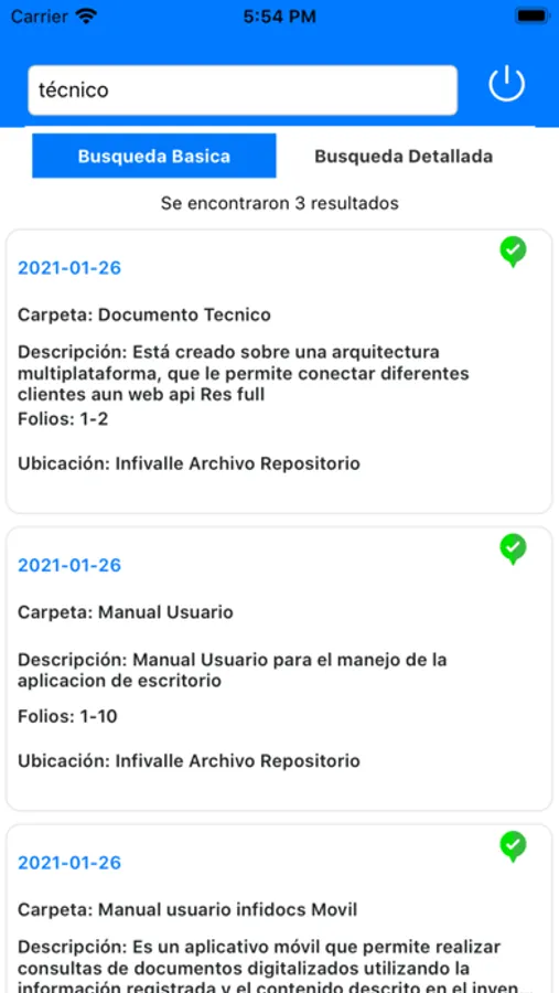 La aplicación permite realizar búsquedas por palabras claves de documentos y formatos del sistema de archivo