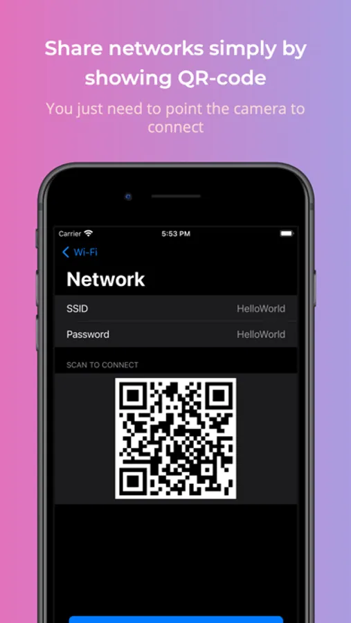 WiFi share is an app that stores network's password and helps share them with your friends. They could easily connect to the network using a QR code