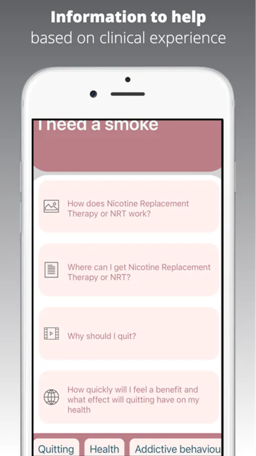 This app is not diagnostic and does not offer health advice. It is designed for people who have already sought clinical advice and have been advised to quit smoking, improve their diet or reduce their alcohol intake.