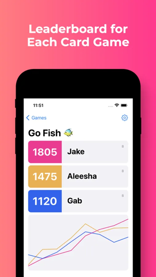 Create a game, add players, then and add scores for each player. Easily see who is in the lead or behind on turns.