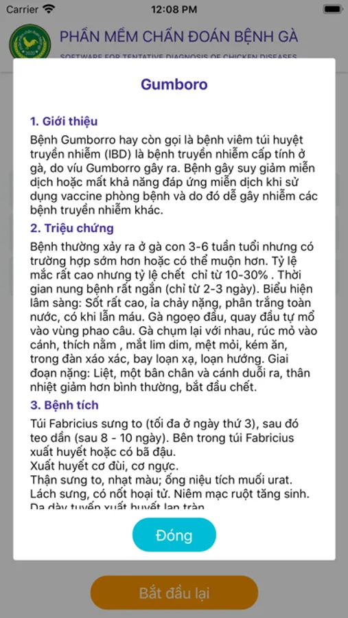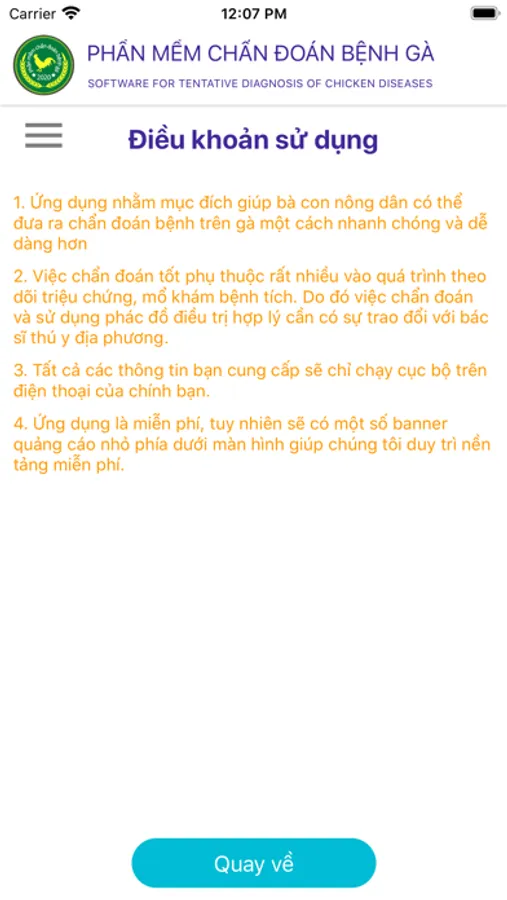 Ứng dụng được xây dựng để chẩn đoán một số bệnh thường gặp ở gà với độ chính xác cao về lâm sàng và thuận tiện sử dụng trên Smartphone, giúp người chăn nuôi có thể có định hướng điều trị, cũng như các bác sĩ thú y địa phương có thể lấy làm tư liệu tham khảo trong phòng chống dịch bệnh