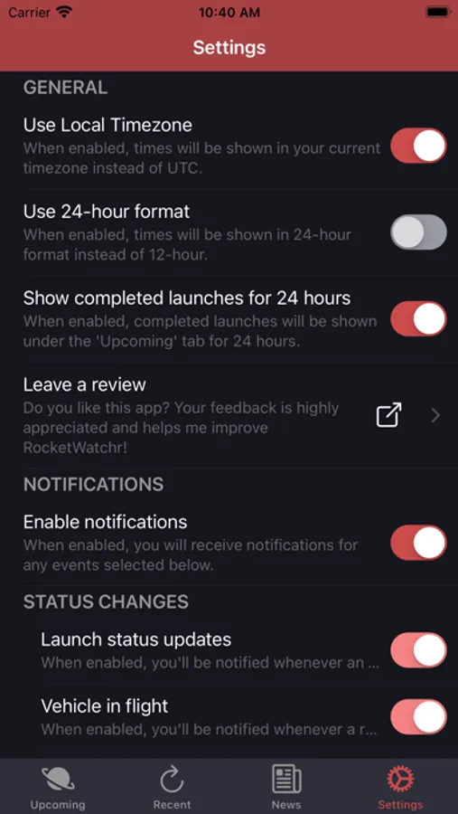 -- Customize your notifications. Do you want to get notified a day before the launch? 30 minutes before the launch? 5 minutes? It's all possible.