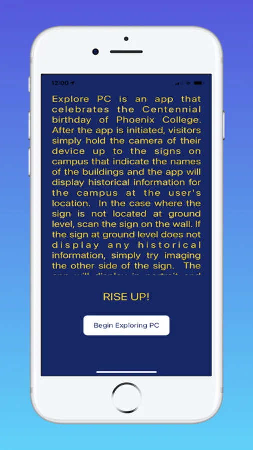 The best way to explore the Phoenix College campus is by scheduling a guided visit to the campus. However, prior time commitments can make it difficult to set a time that is mutually agreeable to the guide and the participant. With the Explore PC app visitors to the main campus of PC get the opportunity to take a self paced self-guided tour of the campus and learn how the campus has changed over the past 100 years and view historical photos right from their own phone.