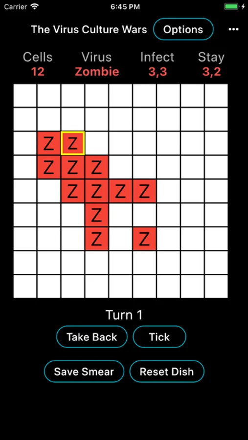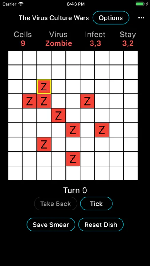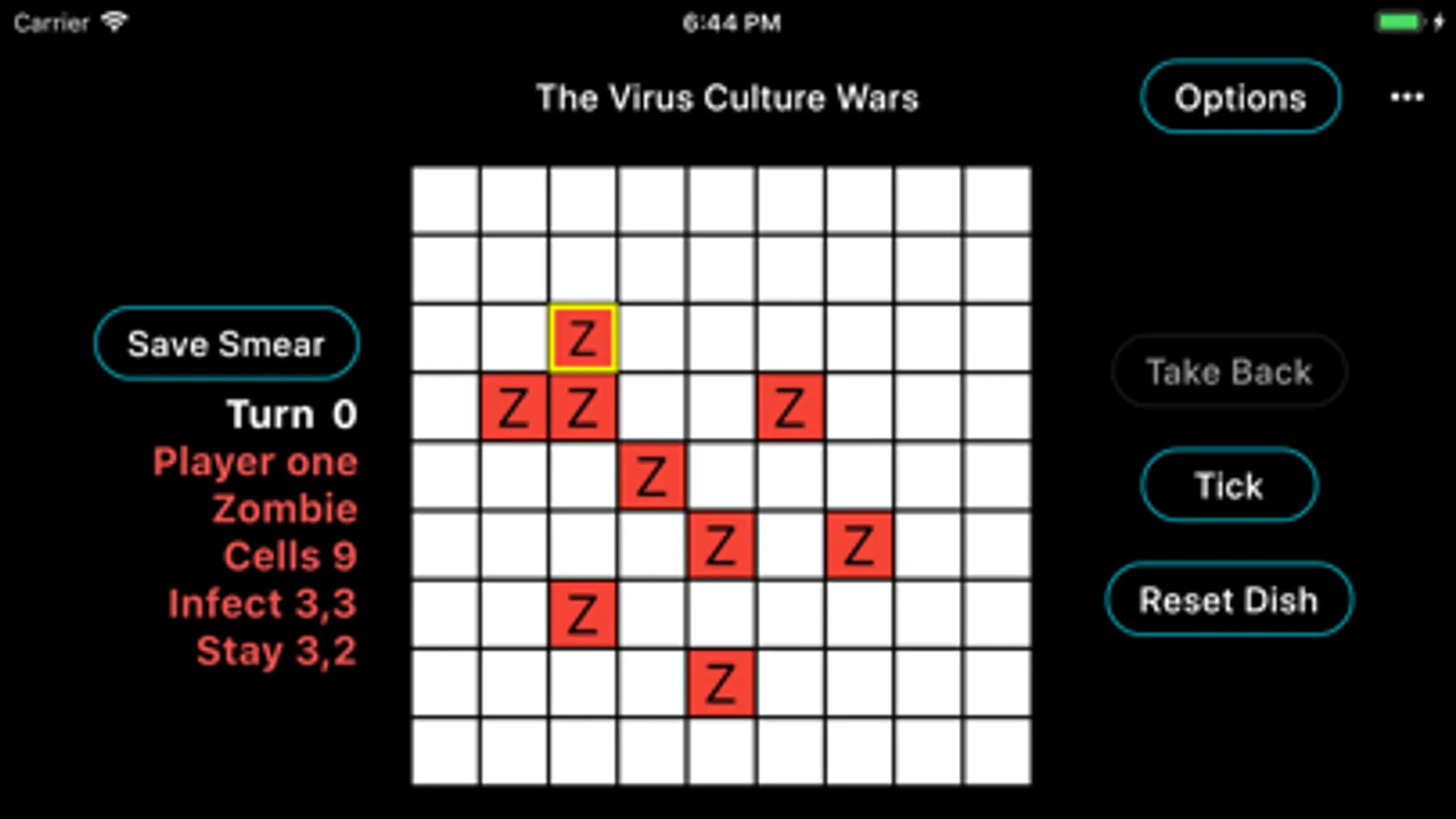 Try to guide your pathogen to victory by increasing the number of cells it infects and blocking the spread of the opposing pathogen until it is eliminated.