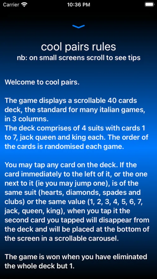 cool pairs displays a scrollable 40 cards deck, the standard for many Italian games, in 3 columns.