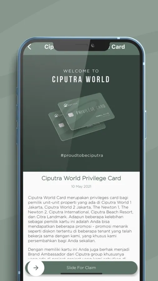 This is an application that contains information and promotional programs and claim privileges related to Ciputra Group projects as follows: