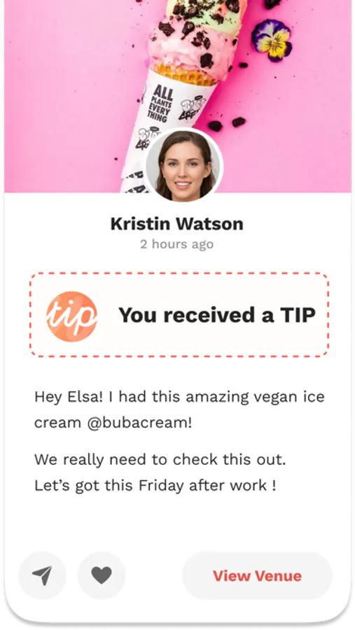 Share your personal TIPs, best dining experiences and receive TIPs from your friends.