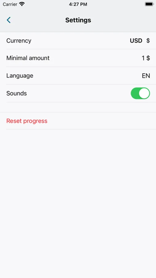 In the settings, you can choose the currency and the amount on the buttons that determines the final result from 5050 to 50500000 in selected currency.