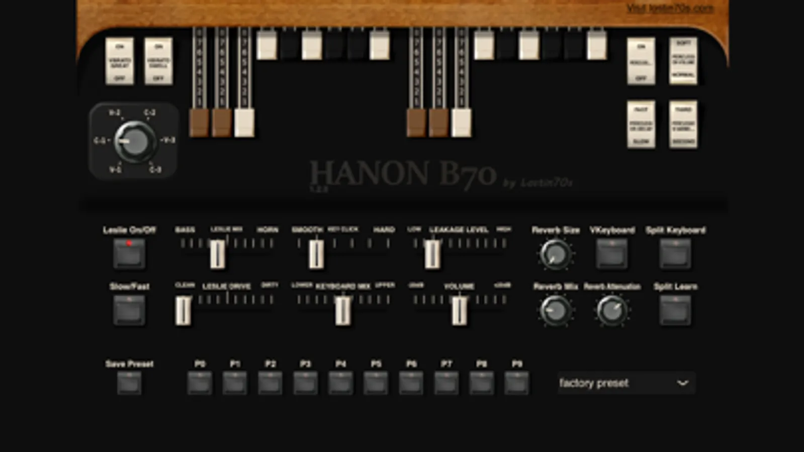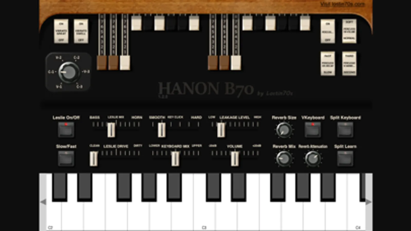 - 2 channels (midi 1 and 2) and two sets of drawbars, a split with midi learn for a game with a single keyboard