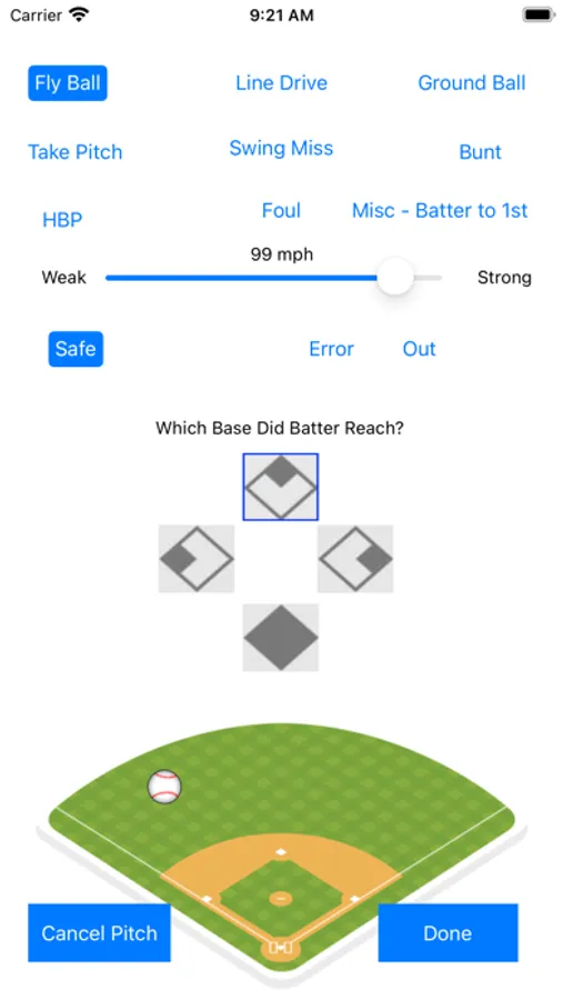 Hitting Approach provides a simple way to track the pitch location, pitch type (fastball, curveball, changeup), and result for all of the at bats in a baseball or softball game. Stat reports and charts are then created using this data that will show the strengths and weaknesses of each player on your team as well as your opponents.