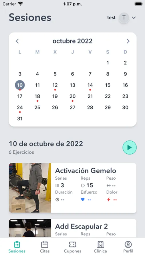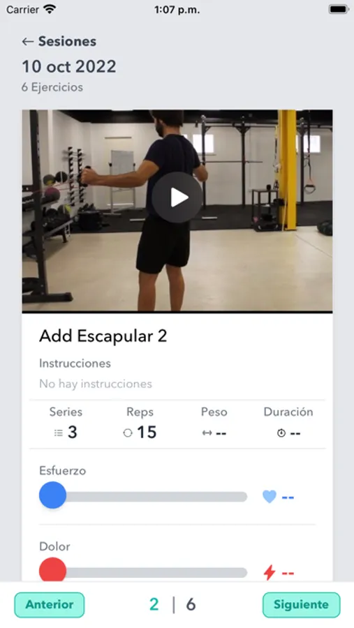 Aportar el feedback de esfuerzo percibido (escala de borg) y de dolor (escala EVA) de cada ejercicio.