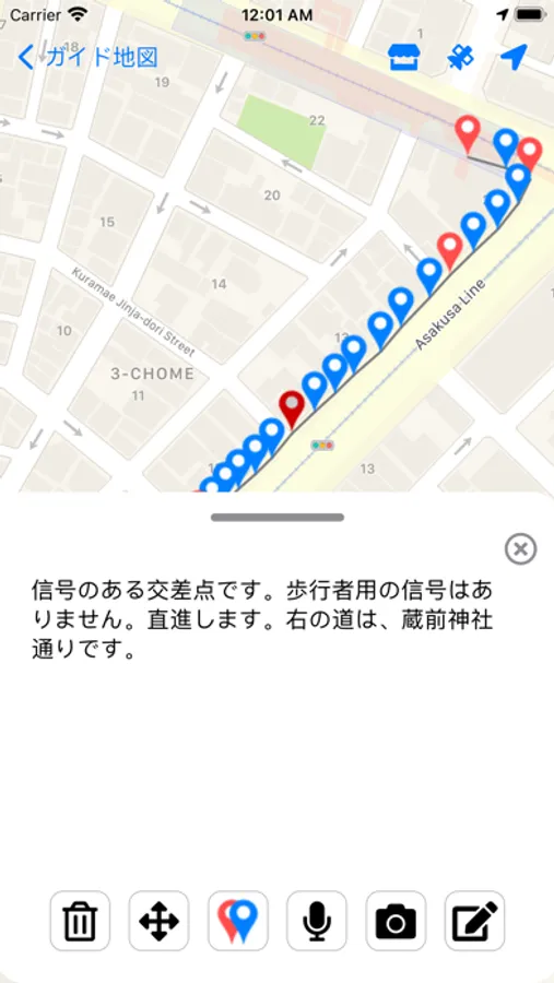 作成したガイド地図を歩行ナビアプリ「ナビレク」で使用することで、