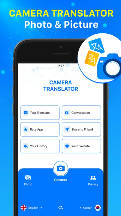 Camera Translator uses the most advanced OCR technology to recognize and translate pictures any object in any language. Camera translator is good for Photo translator and picture translator.