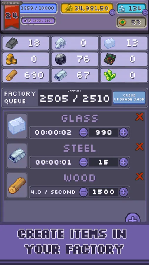 Most items that you sell in your store need to be made in your factory first. Upgrade your factory to hold more items and create them faster. This is key to selling more high value items at your store.
