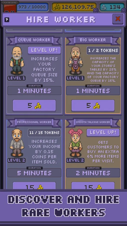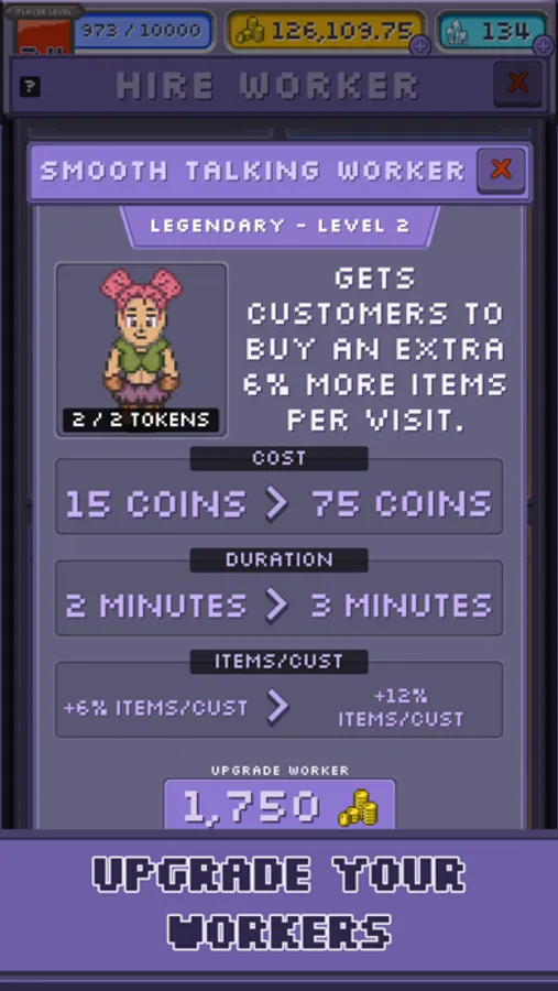 As you level up you unlock new marketing strategies. Whether it’s getting more customers in your store or getting customers to buy more when they’re at your store, marketing is an important aspect of any business. Spending your money on marketing has long-term benefits that are worth the initial cost!