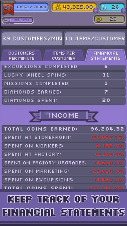 Every item you sell in your store gets you XP. Level up and unlock brand new items for your store, upgrades for your factory, new marketing tactics, and many more features to keep your fortunes growing bigger.