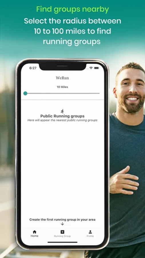 * Find groups nearby- You can find public running groups in your area by selecting the desired radius. Note that the default radius is 10 miles and you can go up to a hundred miles.